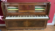 Piano Julius Feurich Yacht-klavier 107 #48544 (1936-1937). 85 toetsen. Opklapbaar klavier! Afmetingen opgeklapt Breedte 137 Diepte 40 Hoogte 107. Deze persoonlijk gerestaureerde piano is voorzien van nieuwe snaren, stempennen, dempers en bijhorende onderdelen en viltinvoeringen. Hamerkoppen zijn herbruikt en zo goed als nieuw. De kast is hersteld. Piano is op leeftijd maar klinkt warm en groots voor z'n klein formaat. Uniek exemplaar!